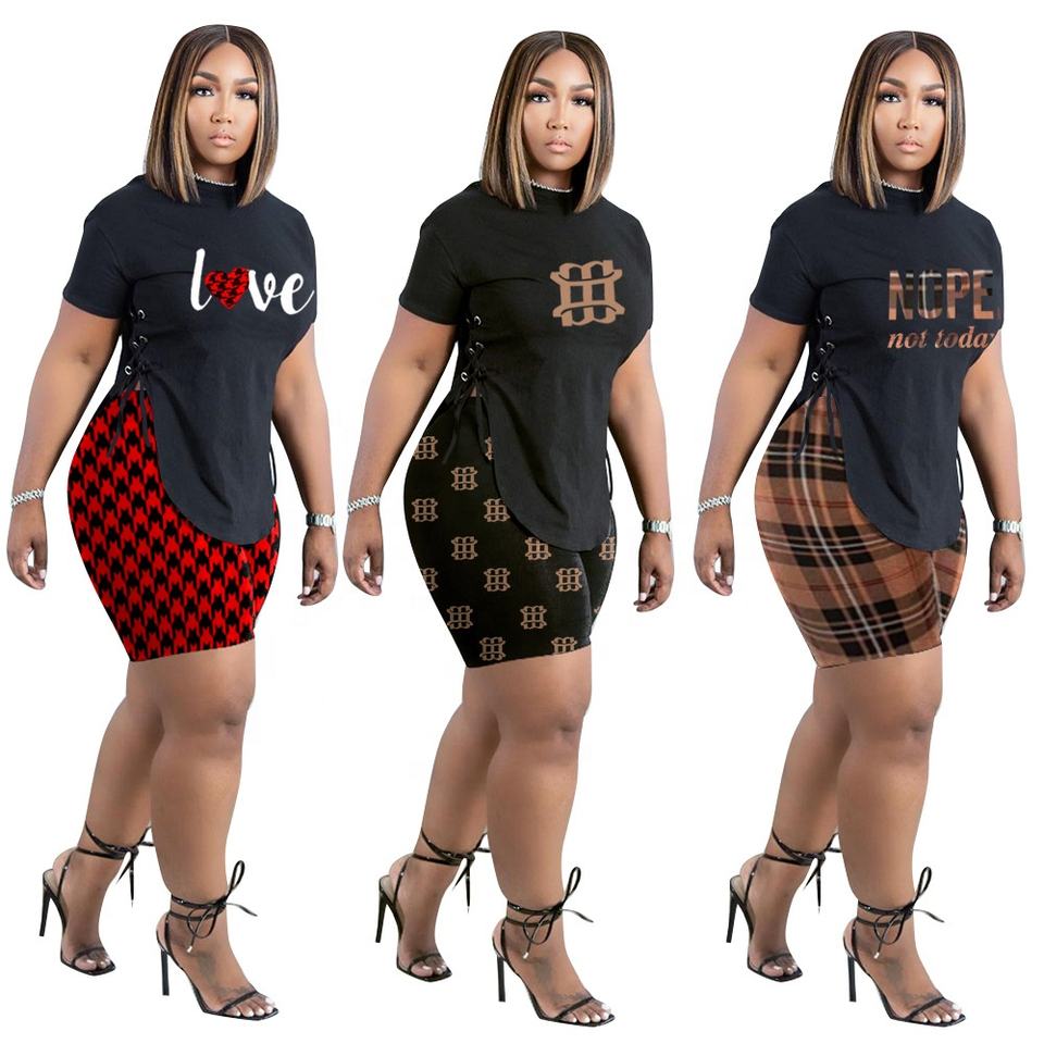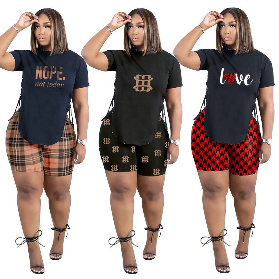 2024 di alta qualità Y2K Plus Size Casual no Love lettera stampa Plaid due pezzi Set corto abbigliamento estivo donna