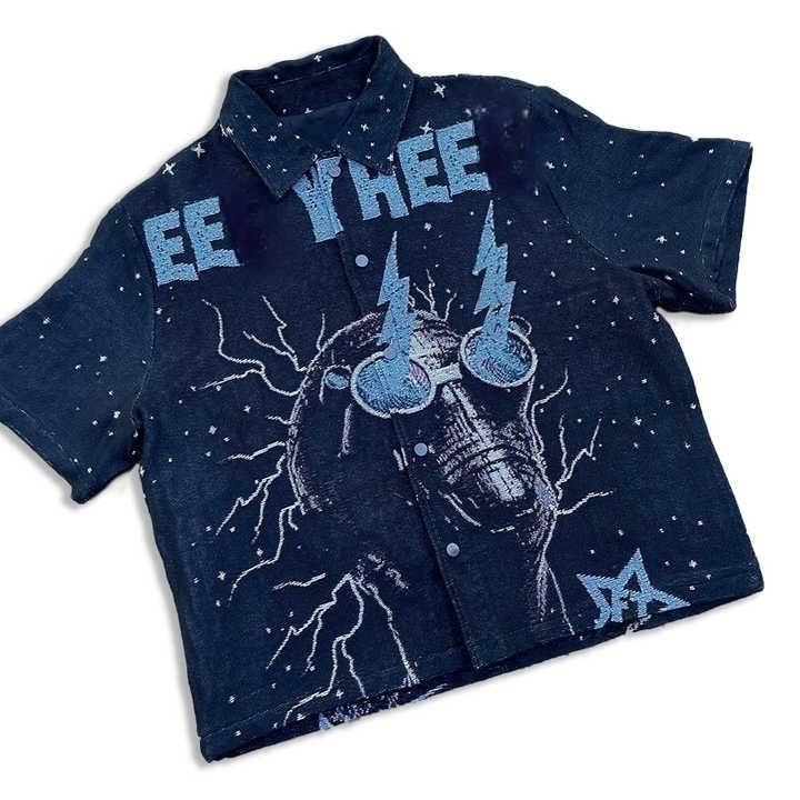 Camicia da 240 grammi di alta qualità stampata in stile Vintage oversize da uomo 100% cotone pagata da TT