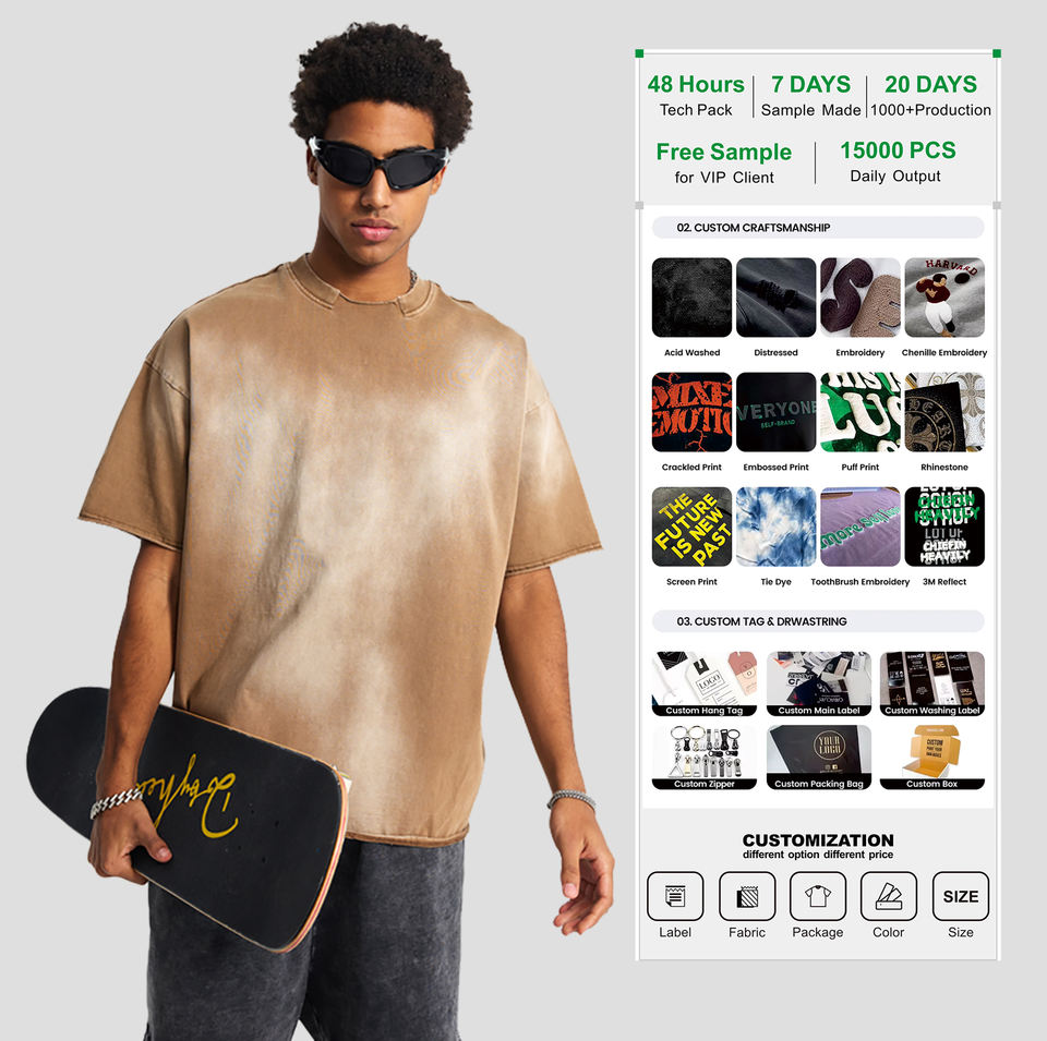 High Quality 280gsm 100% Cotton Heavyweight Spray Monkey Sun Faded Wash Distressed Vintage Soft Touch Men's T Shirts
