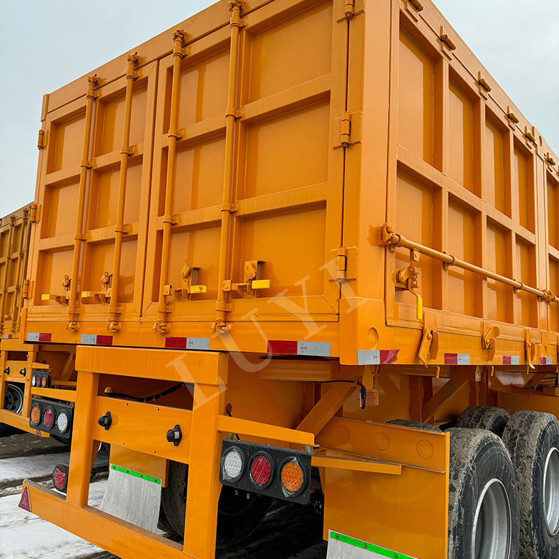 Rimorchio Ribaltabile a 3 Assi in Acciaio di Alta Qualità, Rimorchio con Pareti Laterali, Barra di Traino, Rimorchio per Trasporto Merci Sfuse 60 Tonnellate
