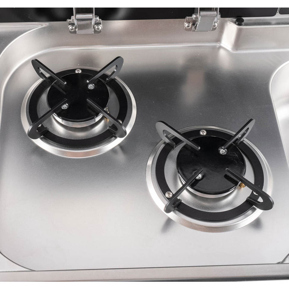 Lavello in Acciaio Inox 304 di Alta Qualità con Fornello a Gas a Doppio Bruciatore - Unità Cucina Integrata per Caravan, Camper e Motorhome
