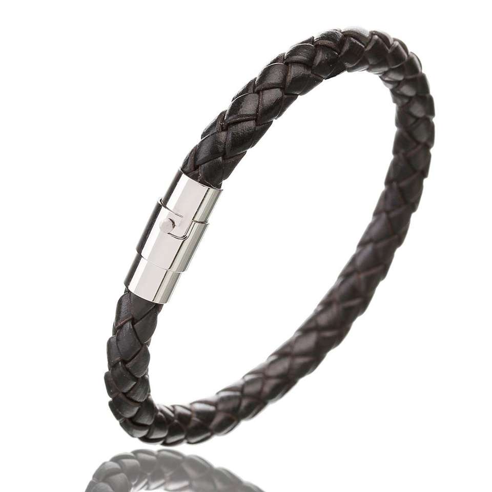 Bracciale in vera pelle Vintage di alta qualità in acciaio inossidabile 316L con chiusura a calamita per uomo donna