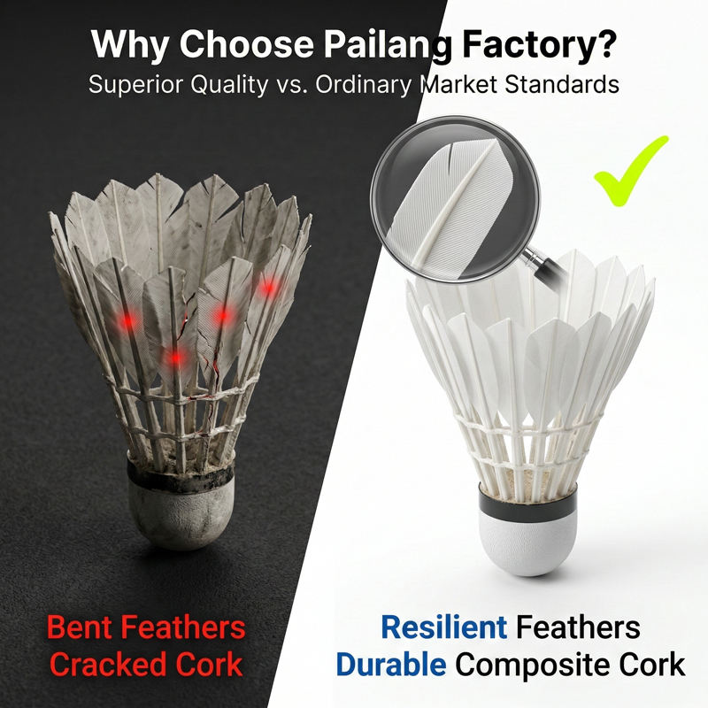 Testa in sughero PU: La testa in sughero PU fornisce una base stabile e duratura, migliorando le prestazioni generali e la longevità dello shuttlecock.
