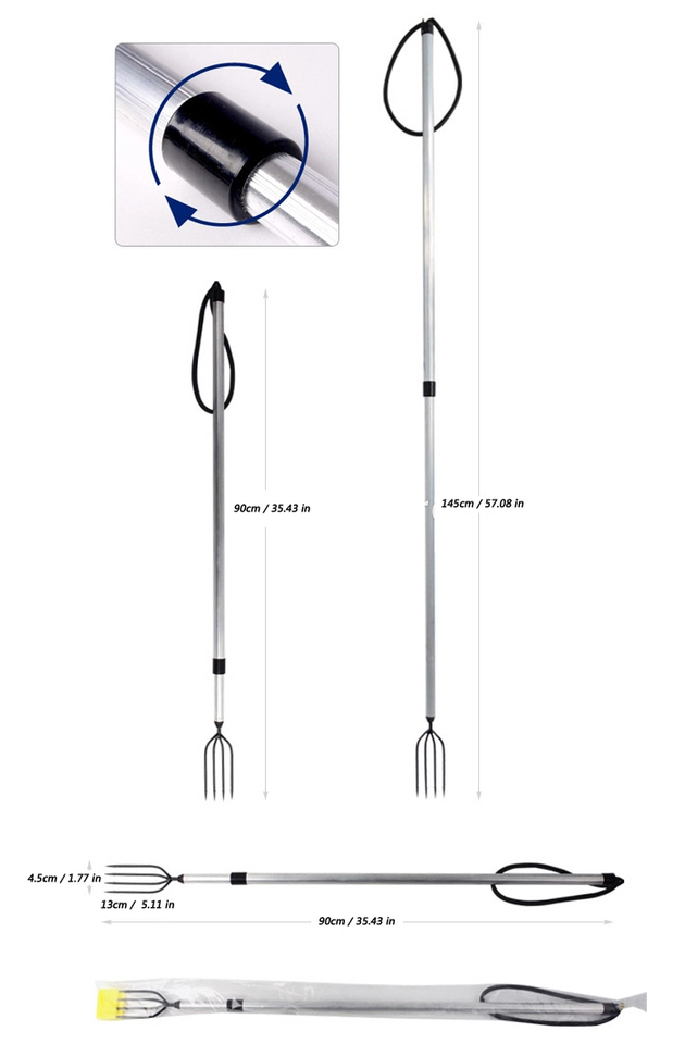 High Quality 4 Forks Fishing Spear with Telescopic Aluminum/Stainless Steel Handle for Fishing Harpoon