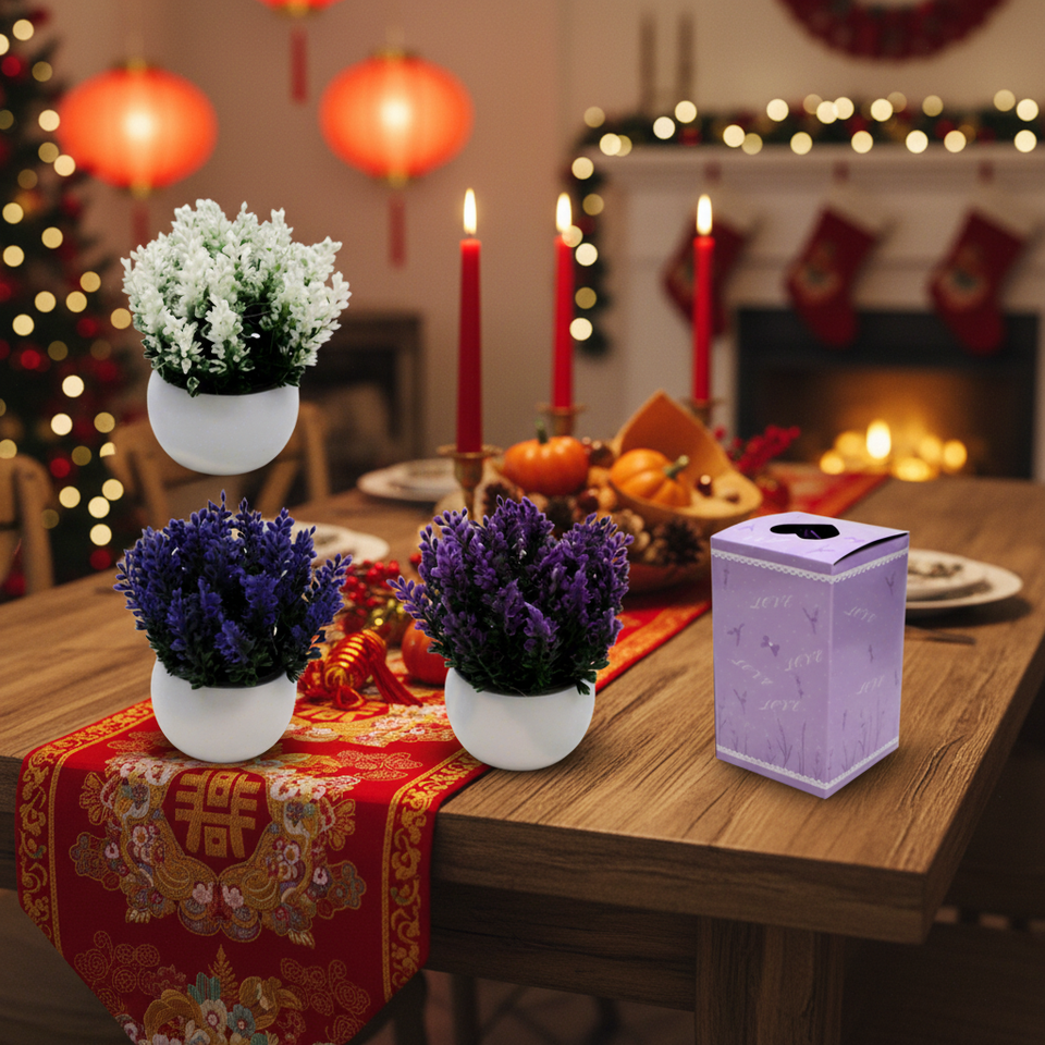 High Quality 48pcs/CS Artificial Bonsai 5.5x3.5" SIMULATION LAVENDER POTTED Thanksgiving Chinese New Year Decorations