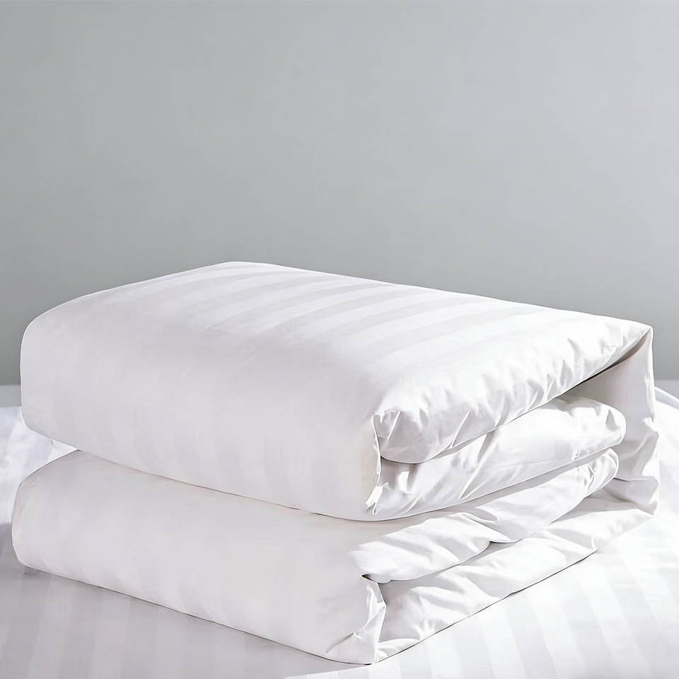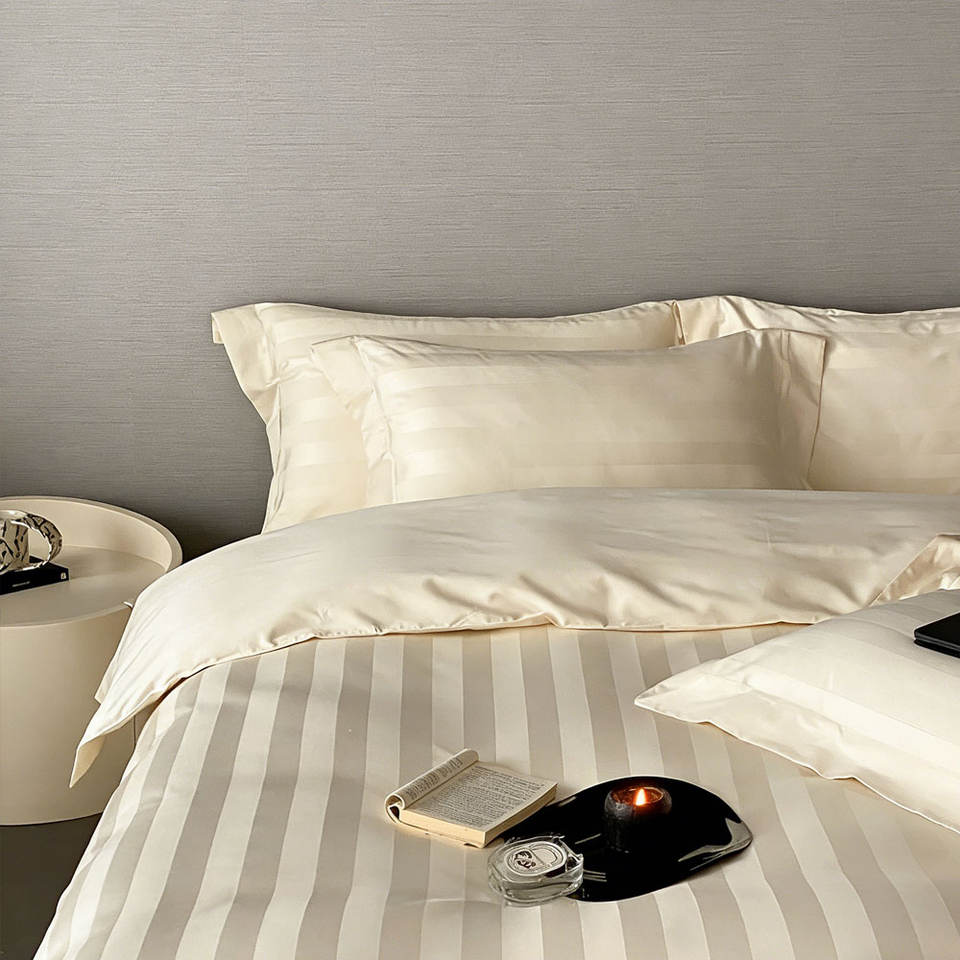 High Quality 4Pcs White Satin Strips Bedding Set Hotel Bedsheets Sets with Flat Sheet Pillow Case Duvet Cover