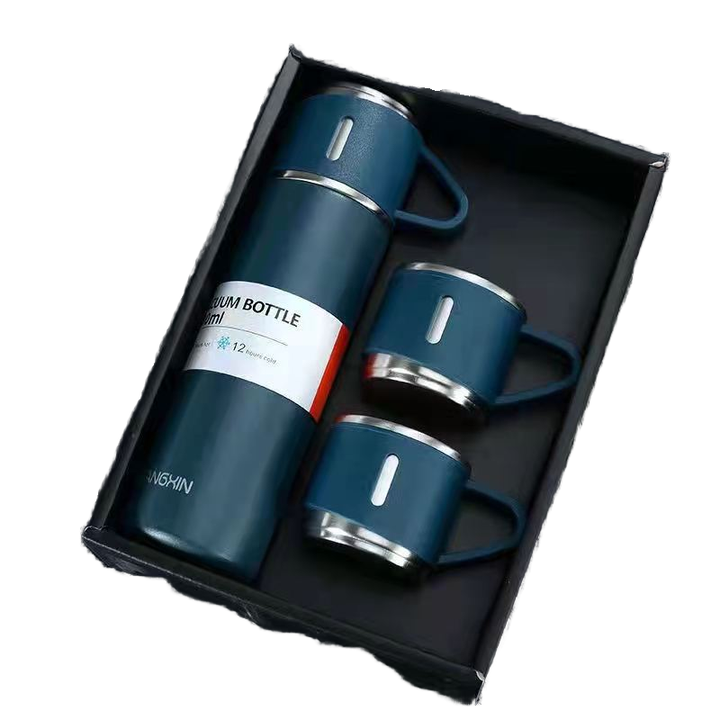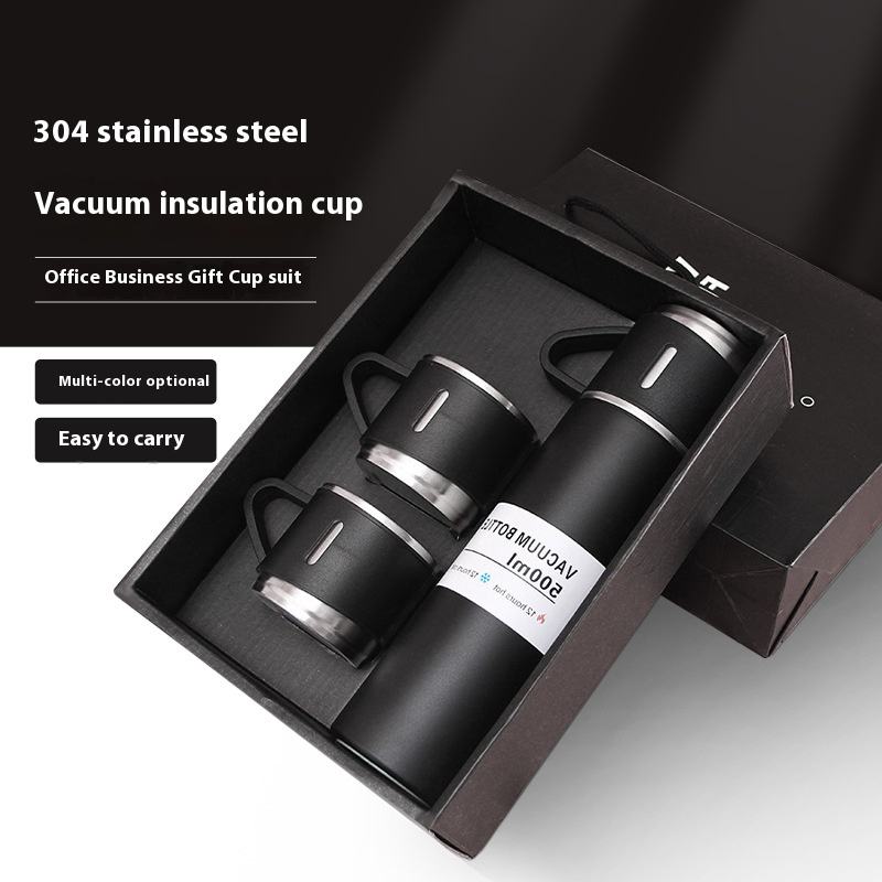Set Thermos di Alta Qualità da 500ml in Acciaio Inox 304 con Logo Aziendale Personalizzato, una Tazza, due Coperchi e Confezione Regalo per Viaggio