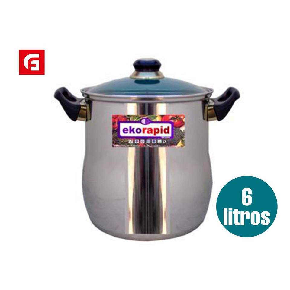 Ekorapid Stainless Steel Casserole Pot 6 Liters Glass Lid Double Handle For Soup And Stock Pots