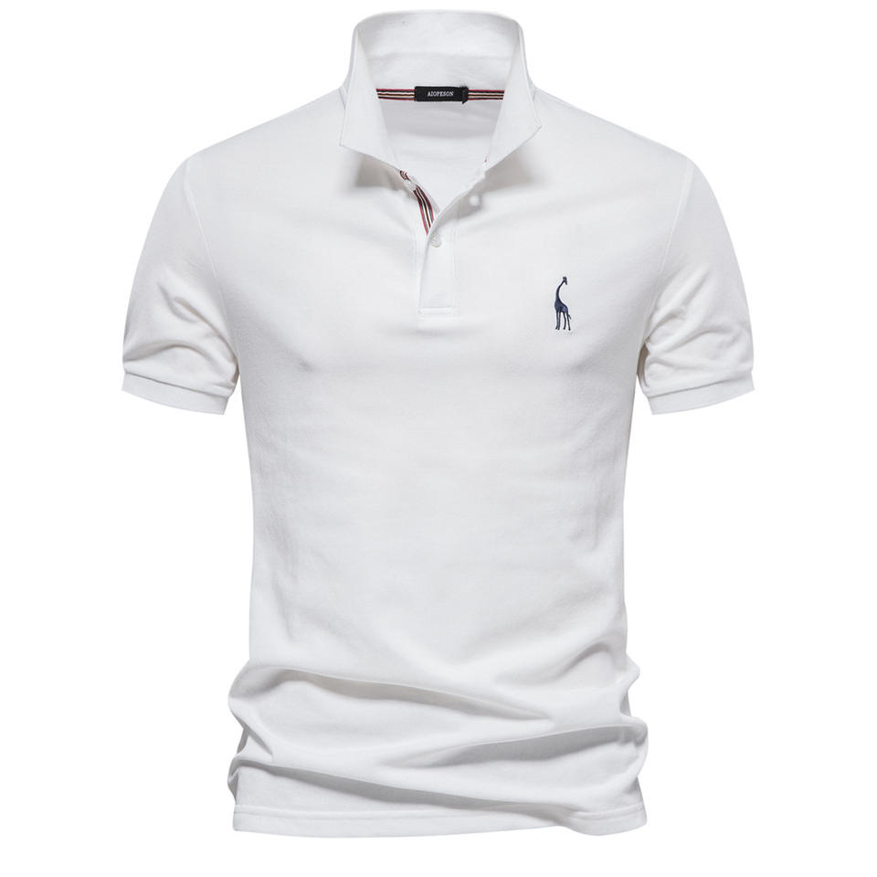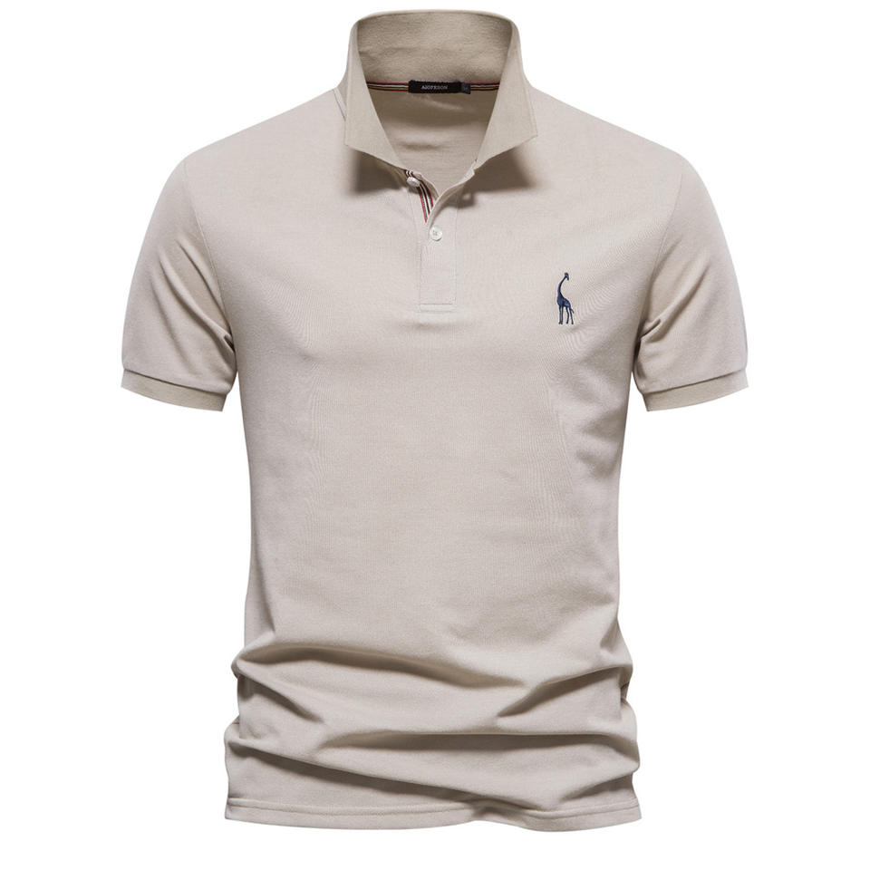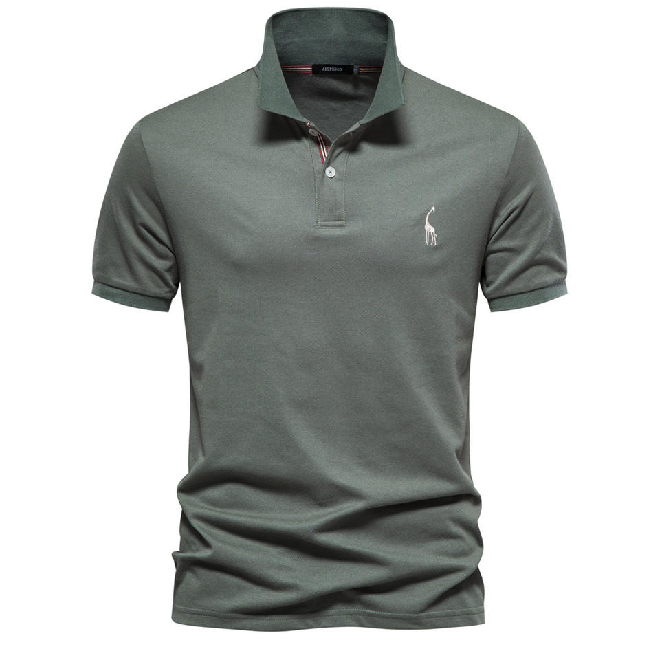 Polo da Uomo di Alta Qualità 70% Cotone con Ricamo Cervo, Tinta Unita, Colletto Polo, Stile Basic, Manica Corta