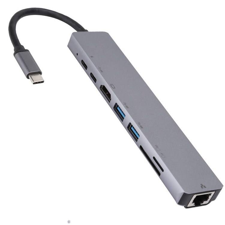 Di alta Qualità 8 In 1 Multiporta di Tipo C Per Hd-mi + VGA + LAN Porta + 2 * USB 3.0 + SD/Carta di TF + Porta Audio + USB-C Hub Cavo Adattatore