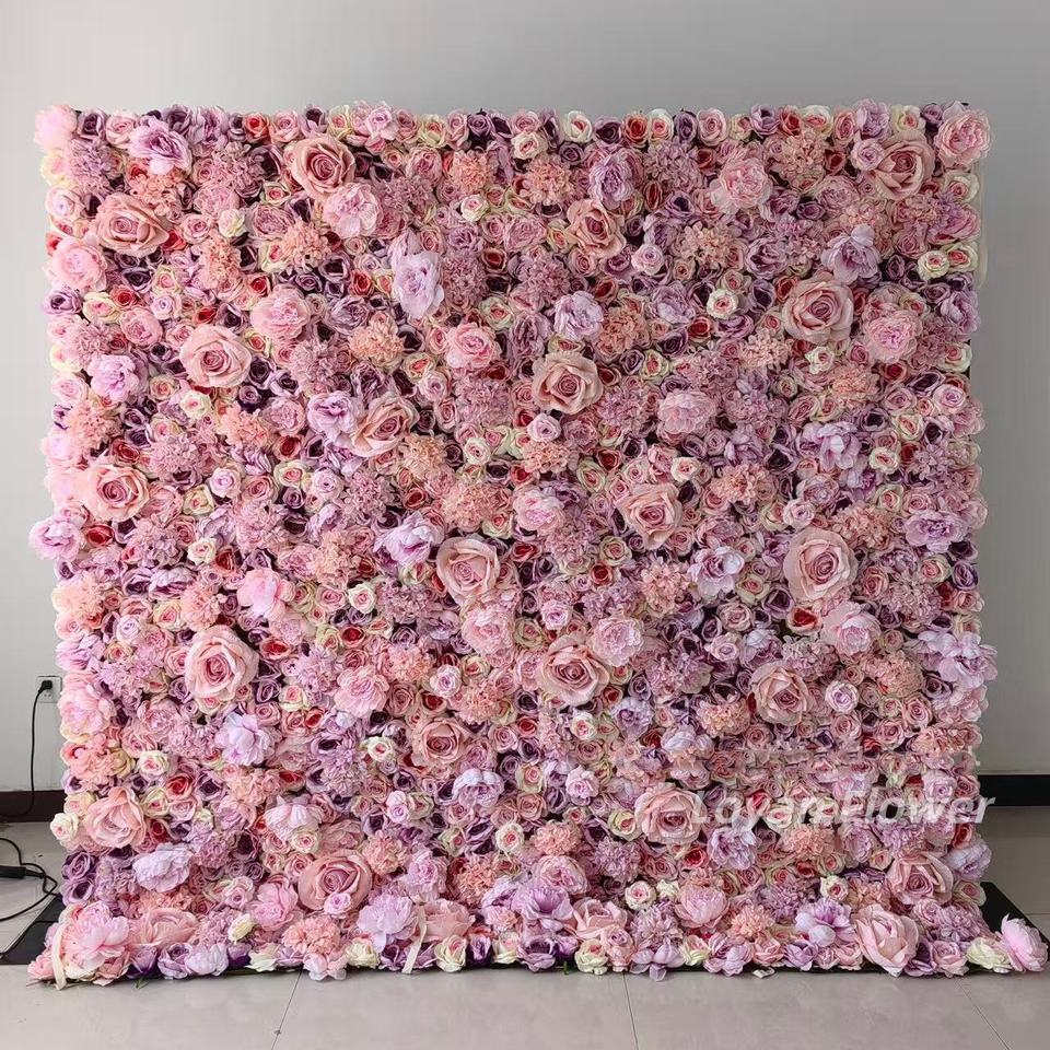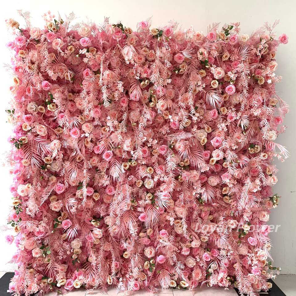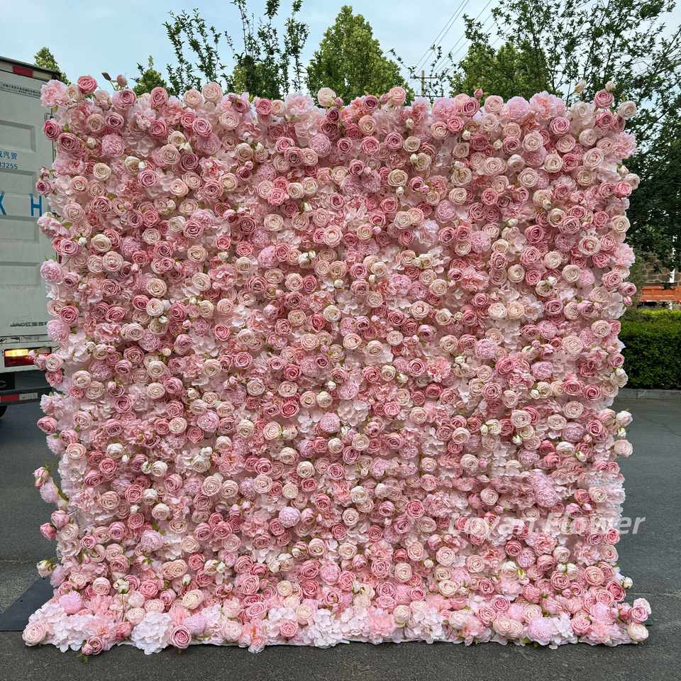 Pannello Floreale in Seta Arrotolabile 8x8 di Alta Qualità, Sfondo Personalizzato 3D/5D con Rose Artificiali Rosa per Decorazioni Matrimoniali