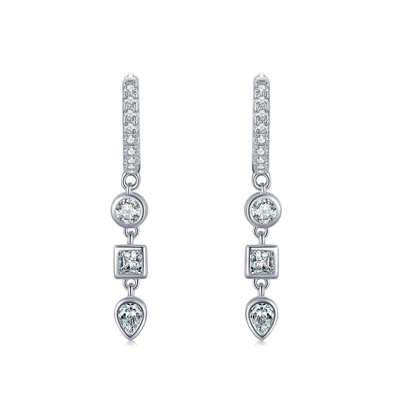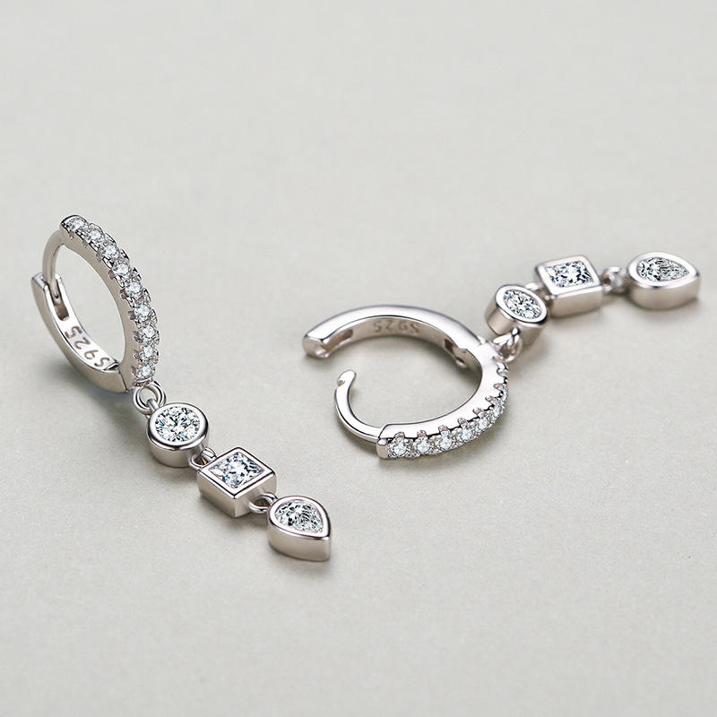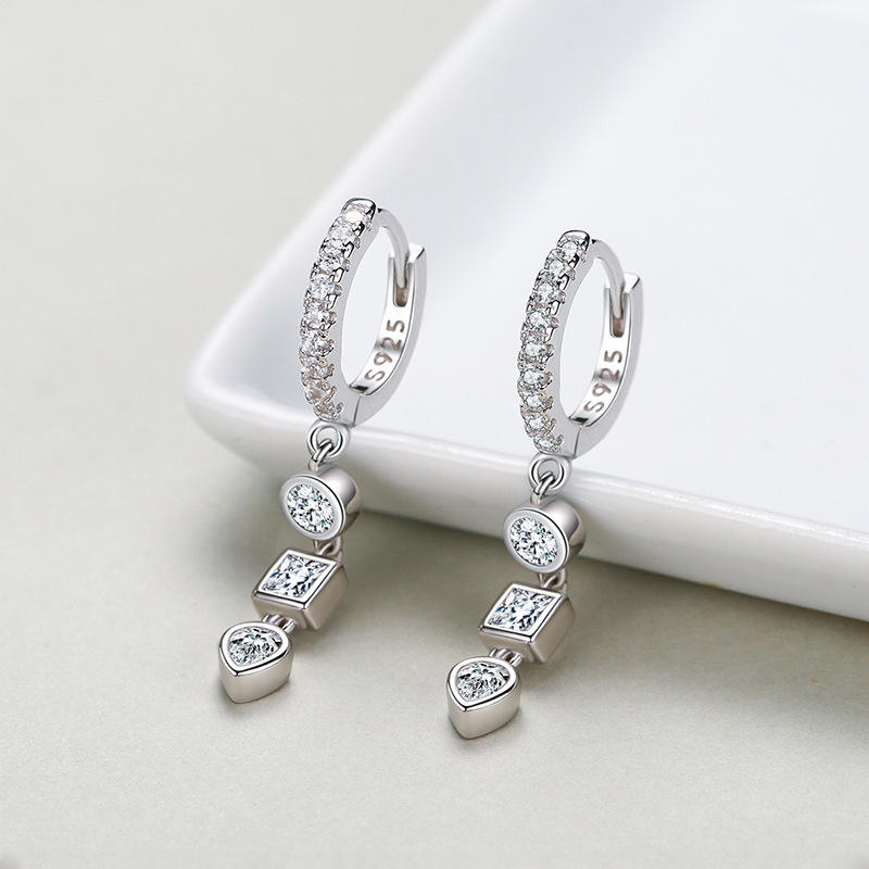 Orecchini Pendenti in Argento 925 Placcato Rodio con Zirconi di Alta Qualità, Stile Europeo e Americano, Gioielli Raffinati da Matrimonio per Donne