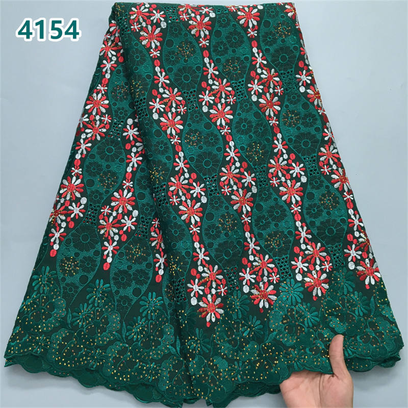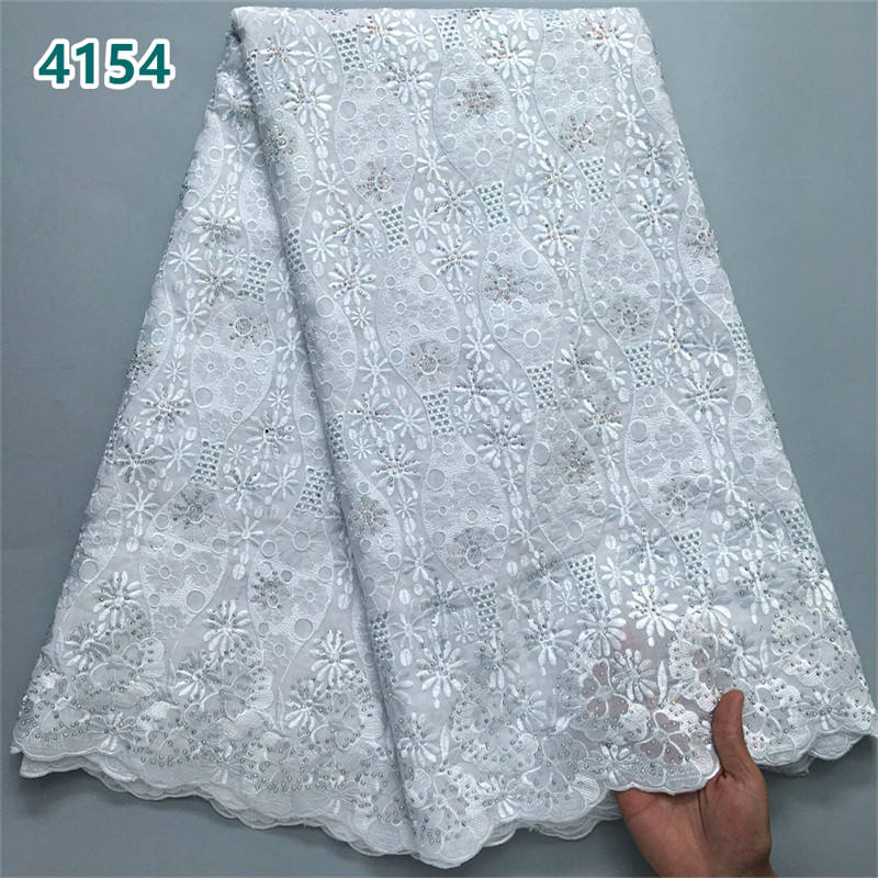 High Quality African Embroidery Cotton Lace Fabric with Crystals Wholesale Swiss Voile Lace for Women Party Dresses Sewing 4154