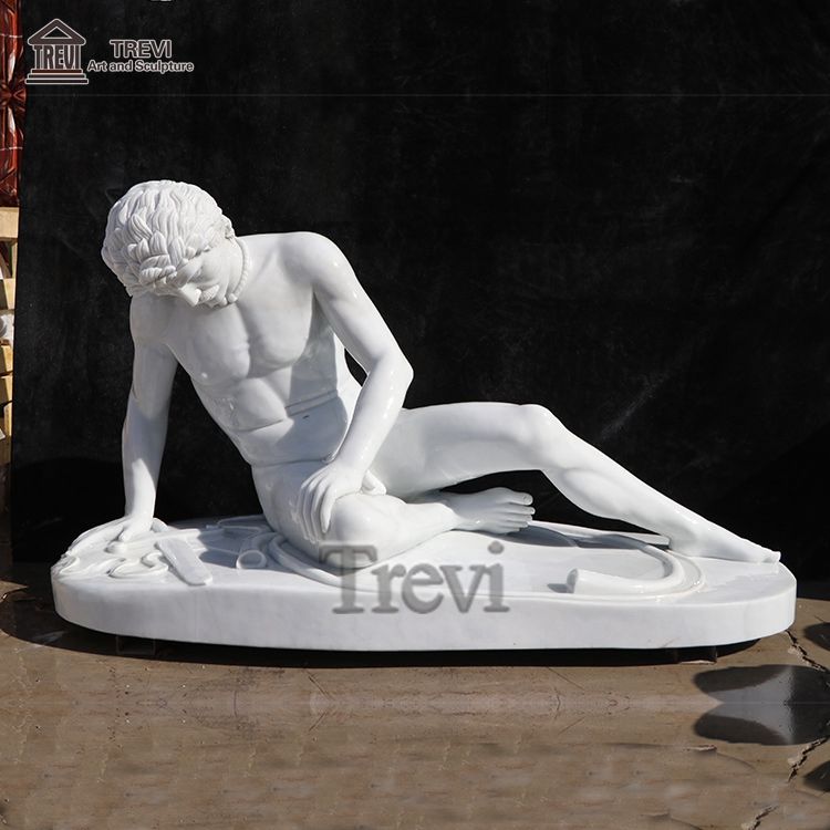 Statua in Marmo Bianco a Grandezza Naturale di Uomo Gallico in Fase Finale della Vita, Stile Greco e Romano Antico, di Alta Qualità, in Vendita