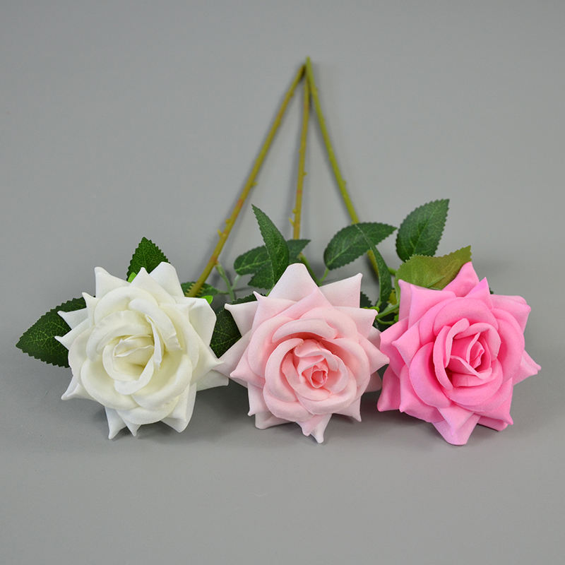 Ramo di Rosa Artificiale di Alta Qualità, Stelo Singolo in Velluto Rosa per Decorazioni Matrimoniali e Domestiche