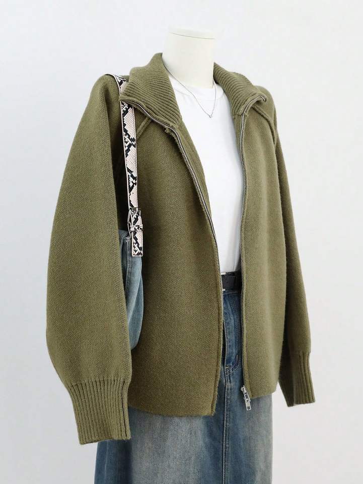 High Quality Autumn Winter Women's Casual Knitted Cardigan Sweater Casual Solid Color Stand Collar Knit Jacket with Zipper