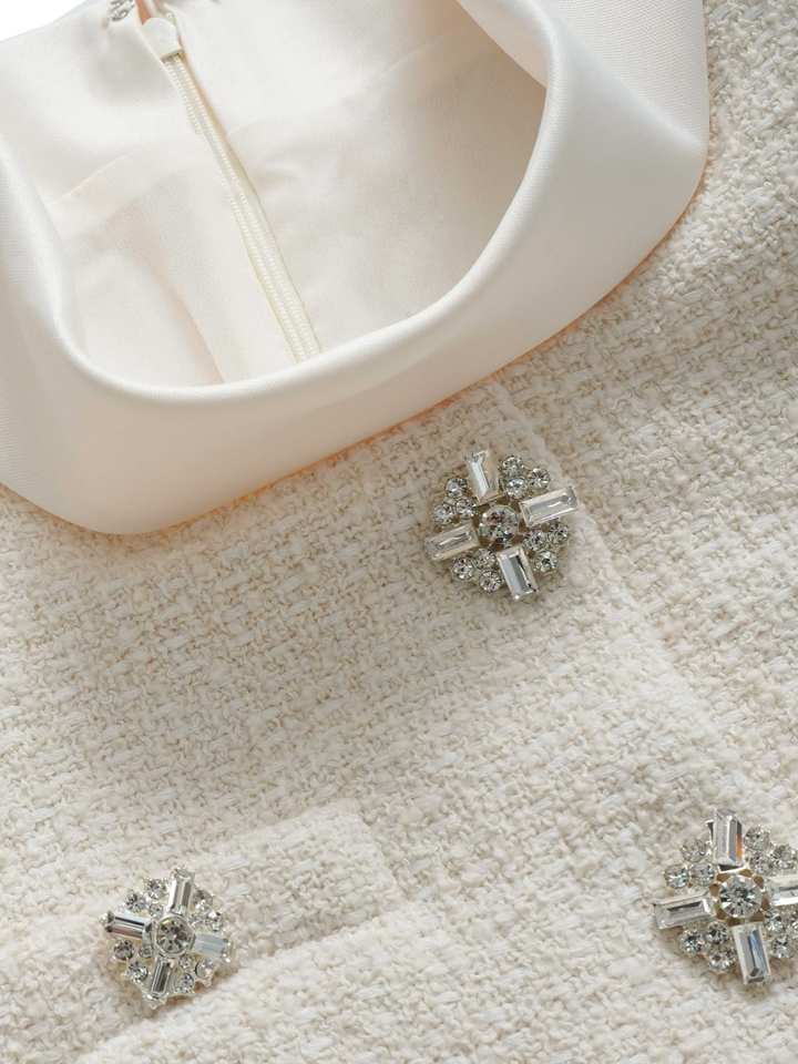 Abito Corto Elegante da Donna in Tweed di Alta Qualità, Nuovo Modello Autunno-Inverno, Maniche Lunghe, Vestibilità Aderente