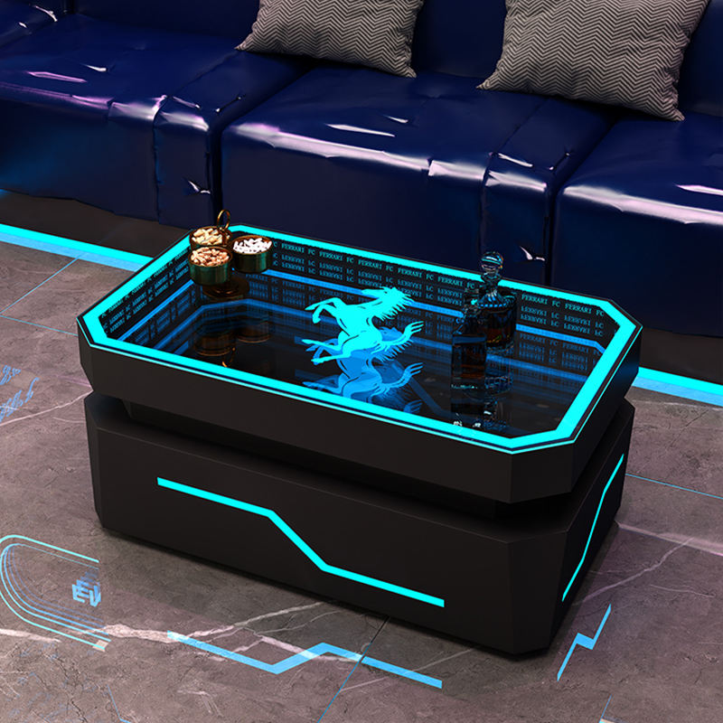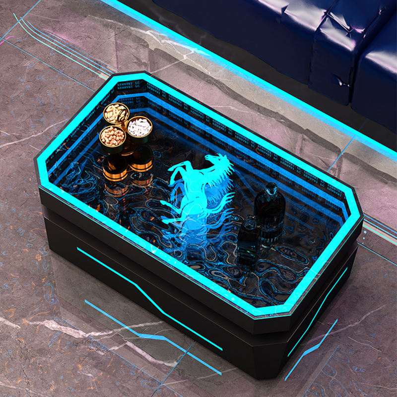 High Quality Bar Dance Nightclub Pub Illuminated Led Table Customized Logo Stainless Steel Tempered Glass Abyssal Mirror Table