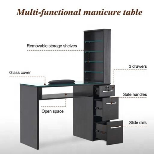 High Quality Beauty Nail Tables Drawers Shelves Glass Customized Salon Furniture Makeup Dressing Station Nail Manicure Table
