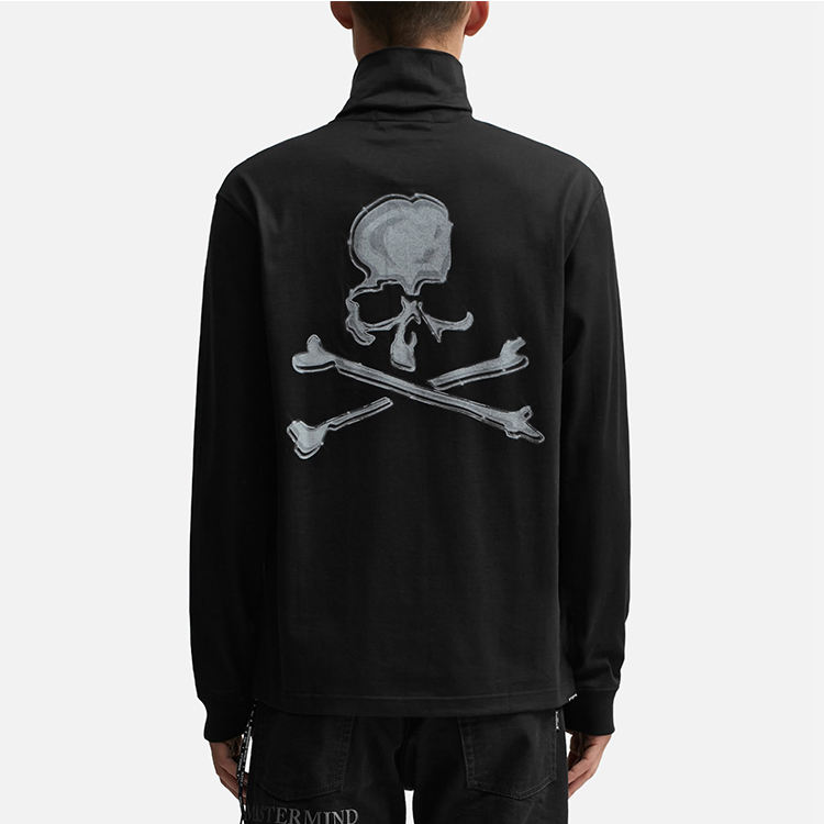 High Quality Black Cotton Turtleneck Men's Long Sleeve T-Shirt with Graphic Logo Print Manufacturer's Product Men's T-shirts