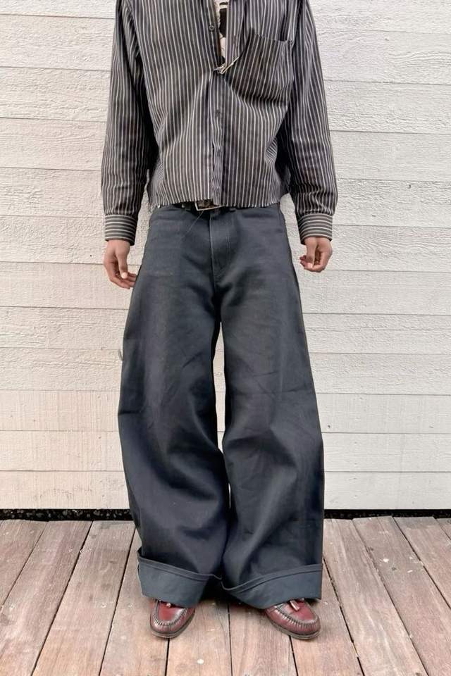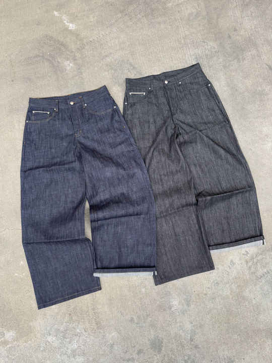 Denim grezzo a bordo selvaggio: L'uso di denim grezzo a bordo selvaggio garantisce un prodotto resistente e duraturo, ideale per un uso frequente.