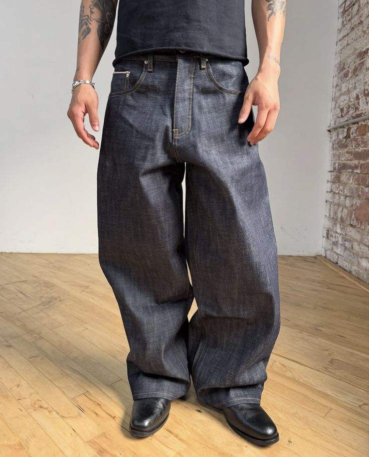 Jeans da Uomo in Denim Nero Indaco di Alta Qualità 14-16 OZ, Pantaloni Personalizzati in Denim Grezzo Selvedge