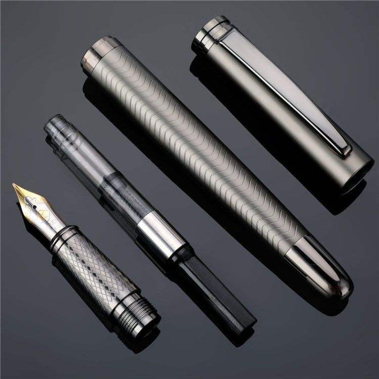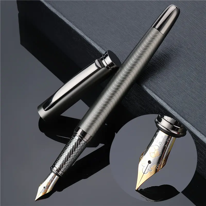 High Quality Black Matte Color Luxury Engraved Design Metal Fountain Pen With Customized Logo