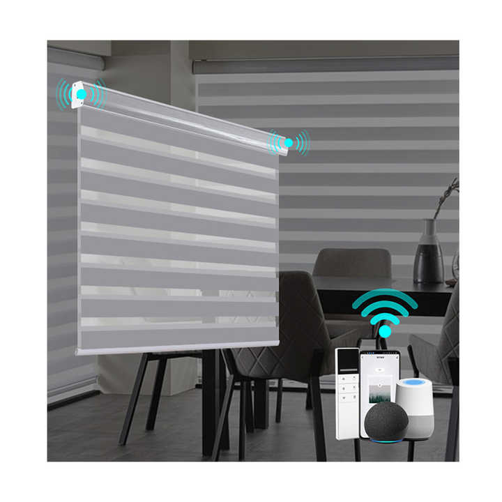 High Quality Blackout Battery WiFi Google Tuya Remote Day and Night Motorized Zebra Blinds Curtain Electric Shades for Windows