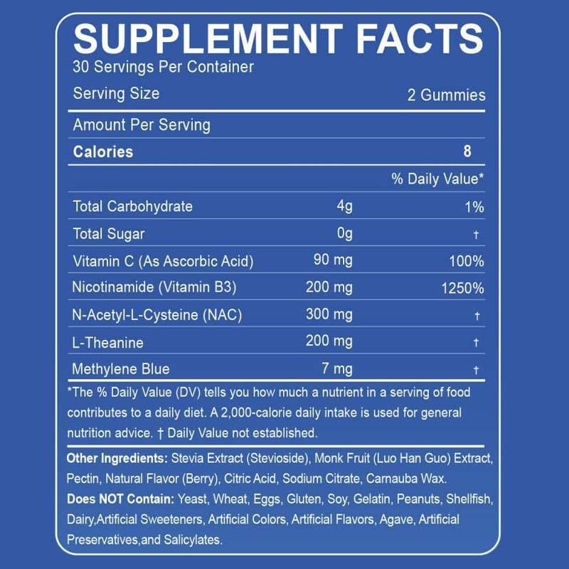 High Quality Blue Gummies 7mg Brain Mitochondrial Support Enhances Energy Focus and Cognitive Sugar Free