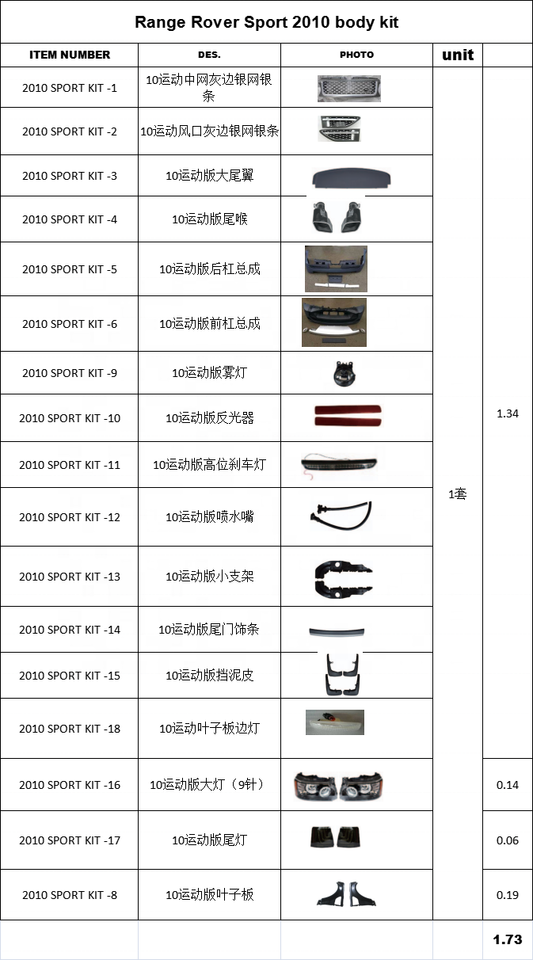 Kit corpo lifting per Range Rover Sport 2010 2012Nome del prodotto