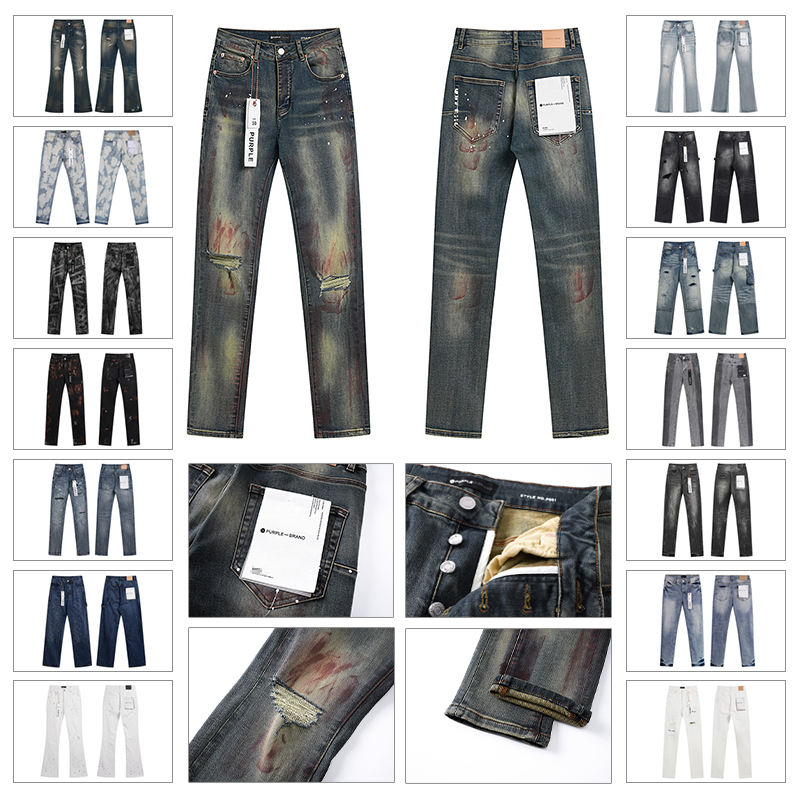 Jeans di Alta Qualità di Marca Viola Stile High Street con Effetto Consumato, Vestibilità Slim Fit, Gamba Dritta e Larga, Pantaloni Retrò Viola