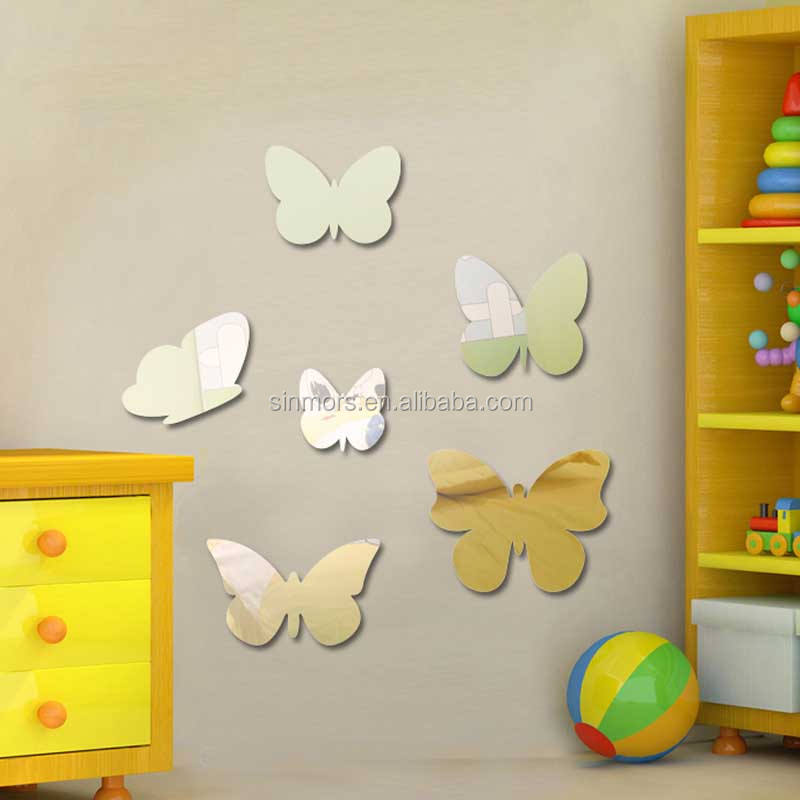 High Quality Butterfly Non Glass Safety Adhesive 3d Acrylic Mirror Wall Mirror Stickers Mirror Sheet Wall Sticker for Home Decor