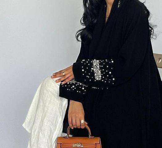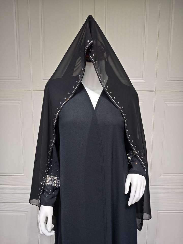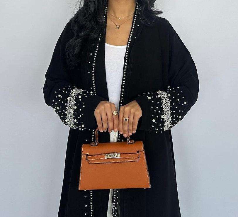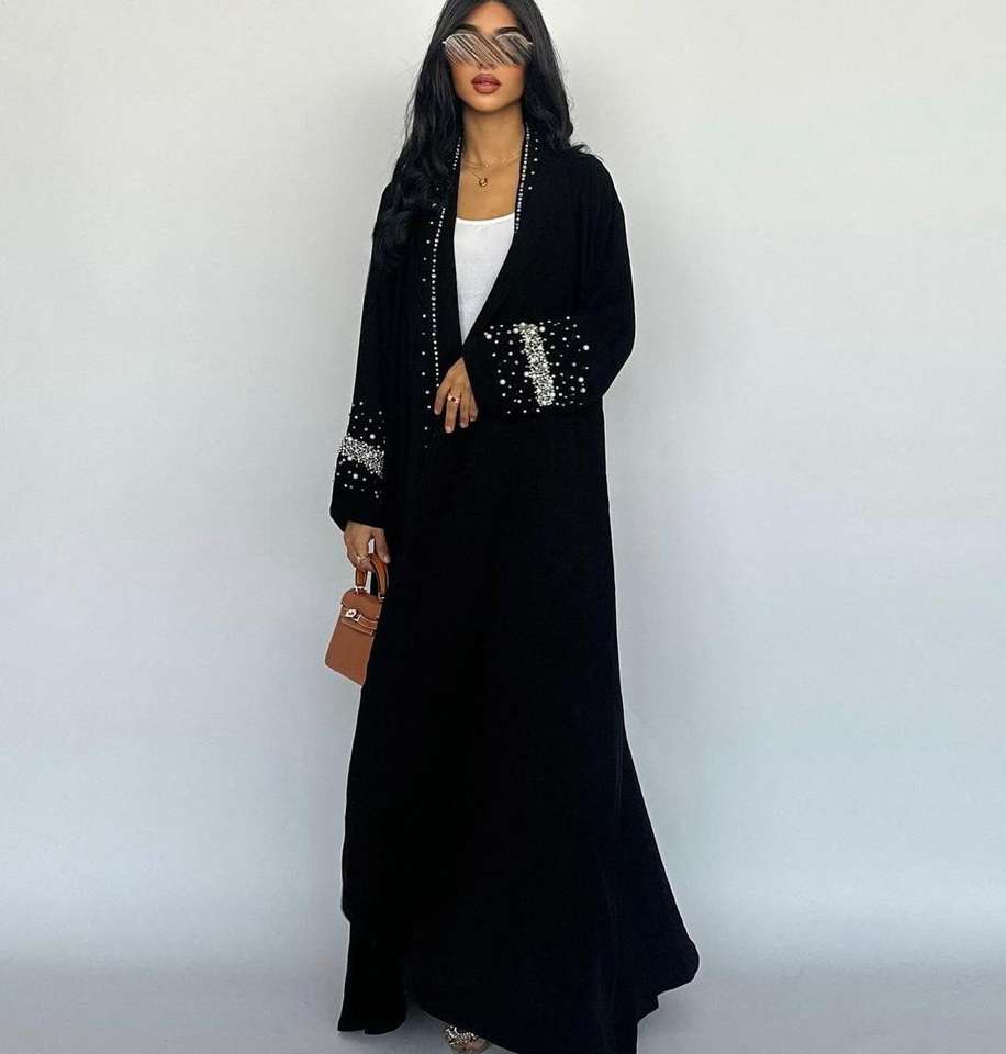 High Quality Cardigan Eid Black Abaya Rhinestone Pearls Shining Crystal Dubai Kimono Open Abaya Muslim Dress Islamic Clothing