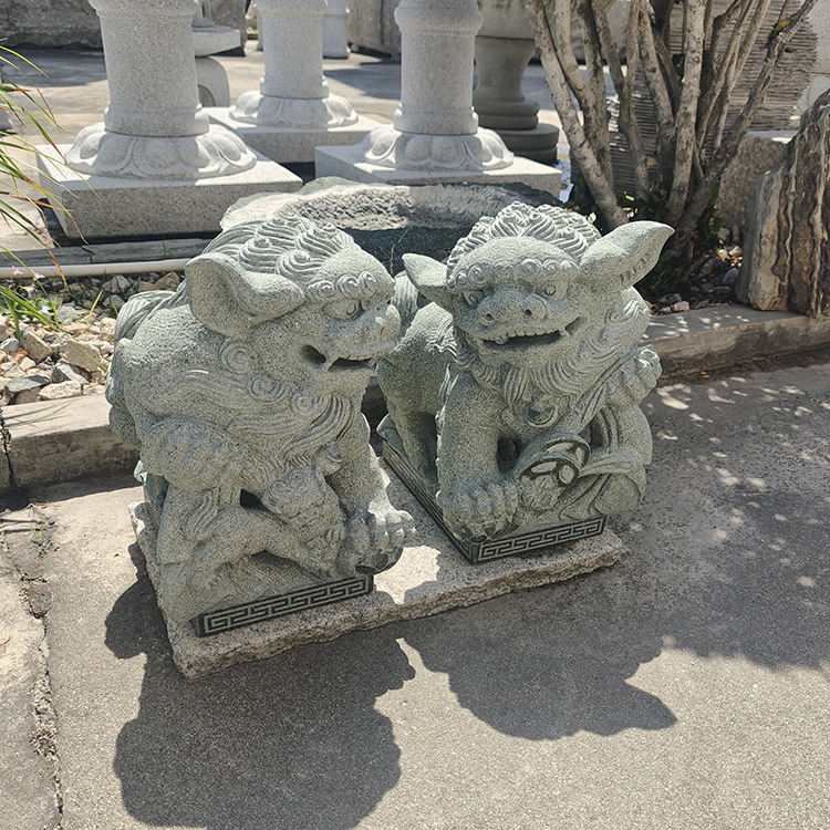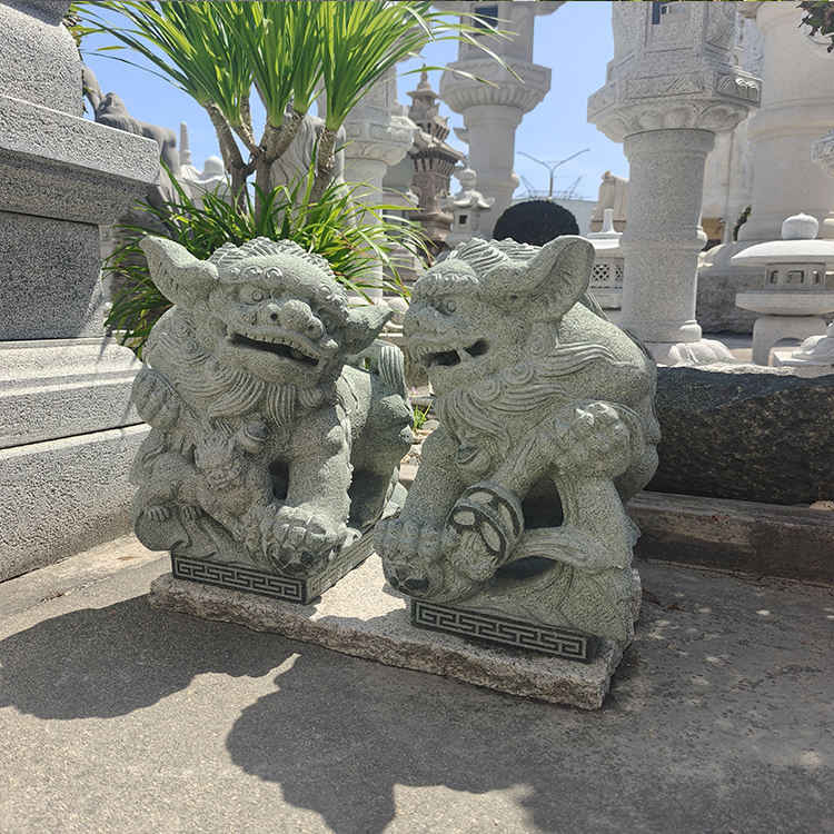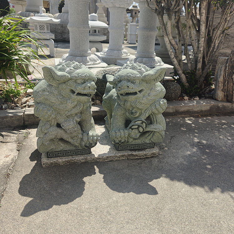 Statua di Cane Fu in Pietra Cinese di Alta Qualità, Sculture di Leoni Foo Dog in Vendita, Altezza 37cm
