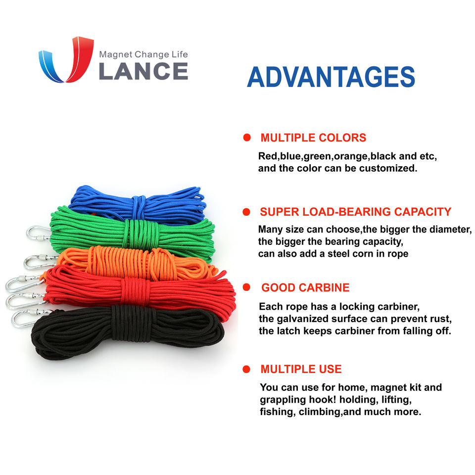 Corda magnetica da pesca colorata di alta qualità da 65 piedi con moschettone