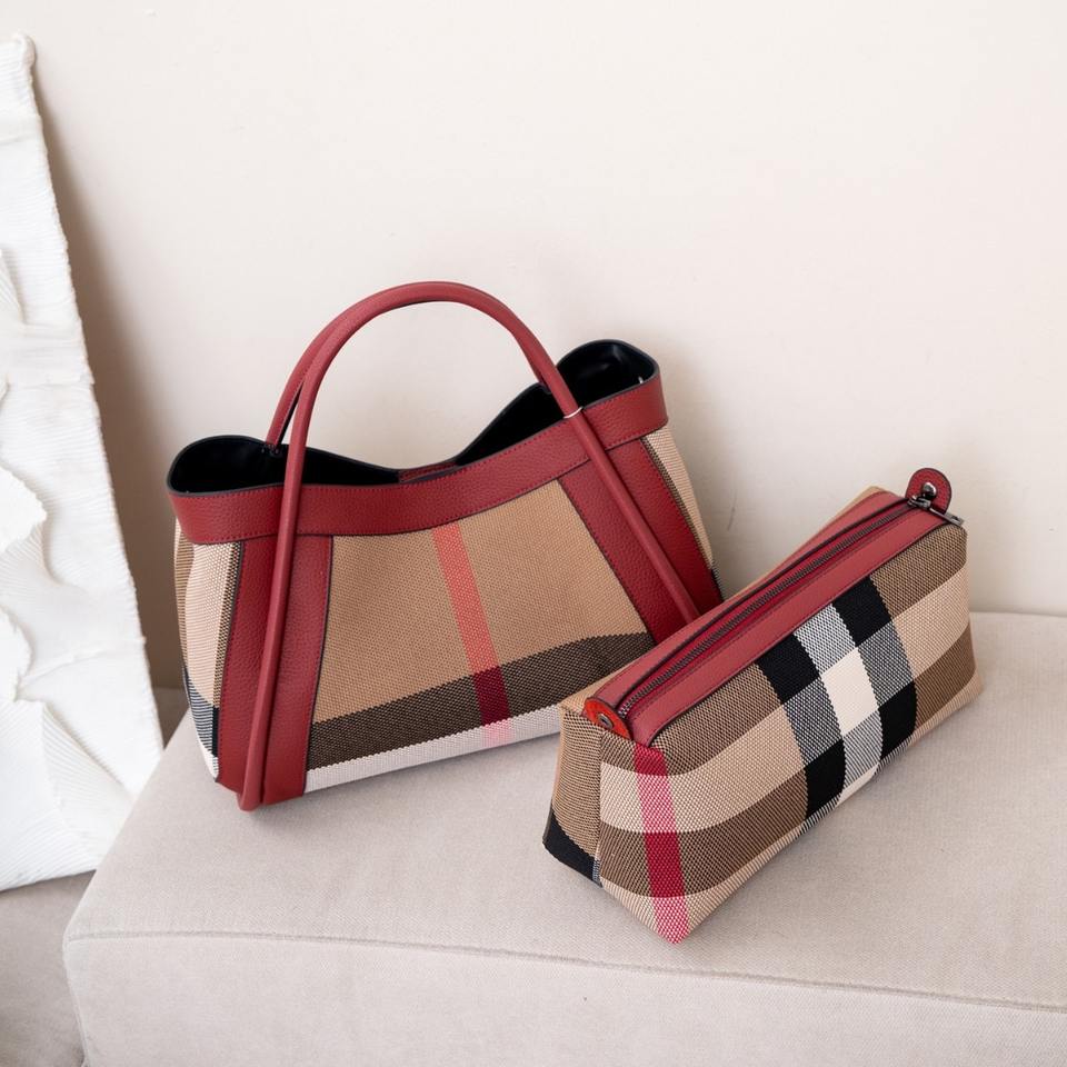 Borsa a Tracolla Grande da Donna in Pelle Bovina di Alta Qualità con Materiale in Tela, Motivo a Quadri Colorato
