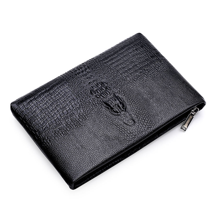 High Quality Crocodile Pattern Men's Hand Bag Fashionable Leisure Design with Zipper Closure and Polyester Lining Long Wallet