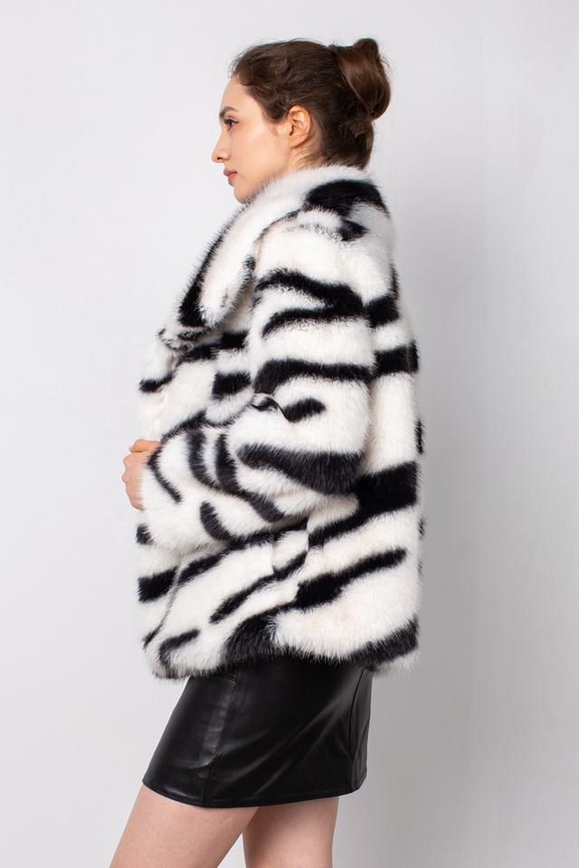 I colori personalizzati di alta qualità imitano il Maxi cappotto in pelliccia sintetica morbida e calda con stampa zebra di coniglio di alta qualità