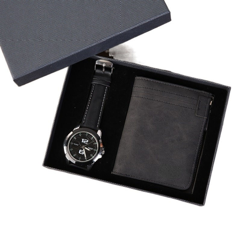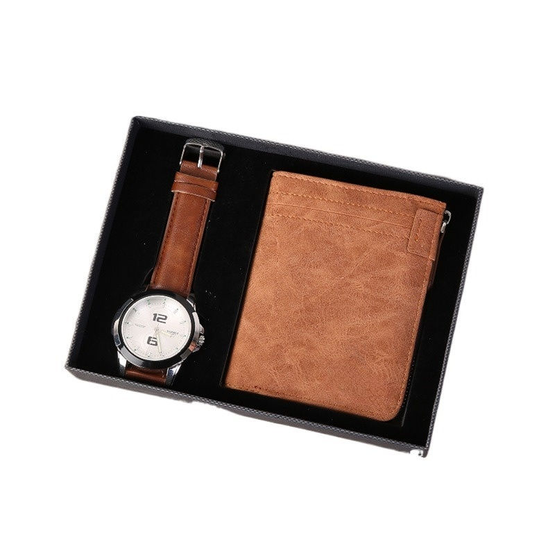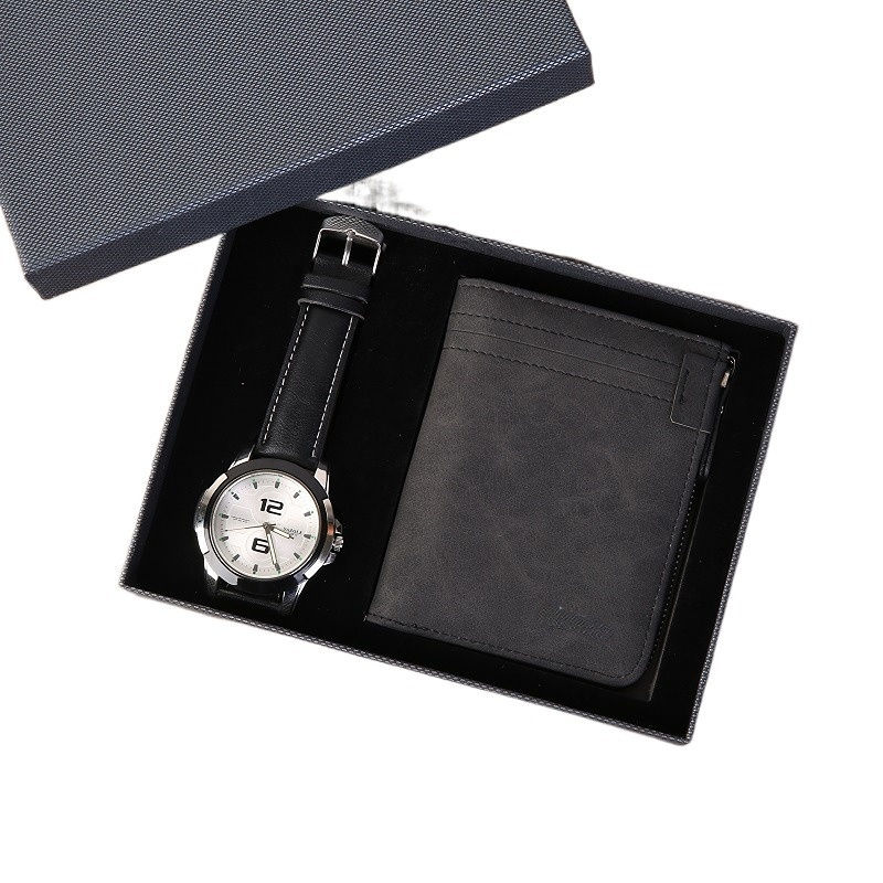 Di alta qualità Custom Design Logo Rfid portafoglio in pelle di lusso moda da polso orologio al quarzo set regalo per padre uomini regali di capodanno