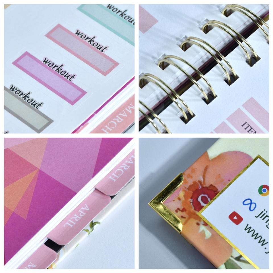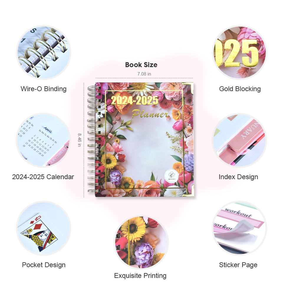 Agenda Personalizzata di Alta Qualità con Nuovo Design Floreale, Taccuino a Spirale con Tasche e Pagine Divisorie