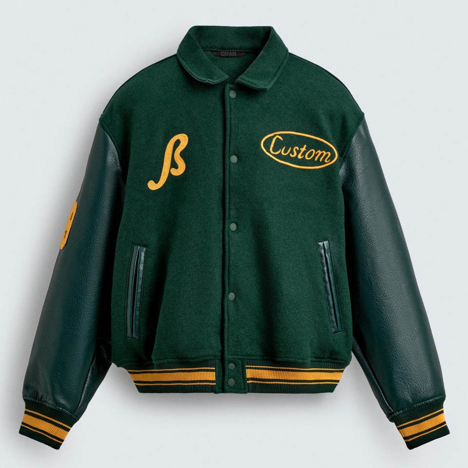 Giacche Varsity da uomo personalizzate di alta qualità con maniche in pelle ricamate con maniche invernali Bomber Jacket