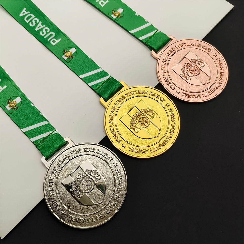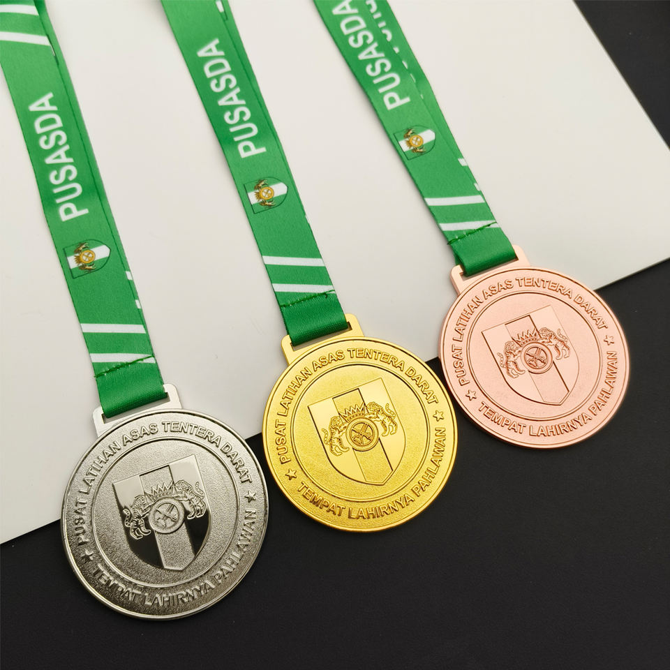 Medaglie di metallo personalizzate di alta qualità oro argento e bronzo premi con cordino