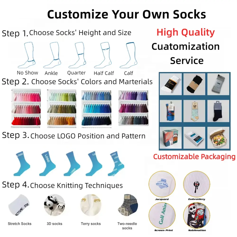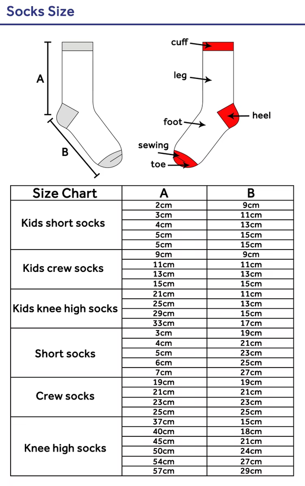 Calzini alla caviglia, Calzini dell'equipaggio, Calzini al ginocchio, Calzini a tubo