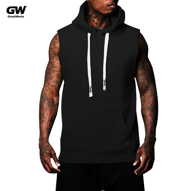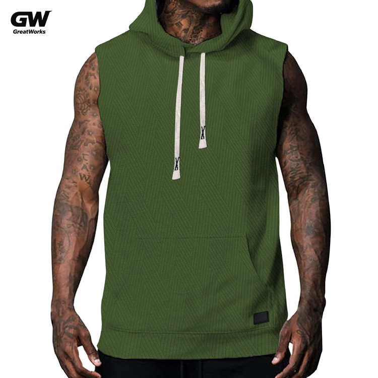 Felpe Senza Maniche con Cappuccio da Uomo di Alta Qualità, Personalizzate, Effetto Consumato, in Maglia Pesante 100% Cotone, Vestibilità Slim