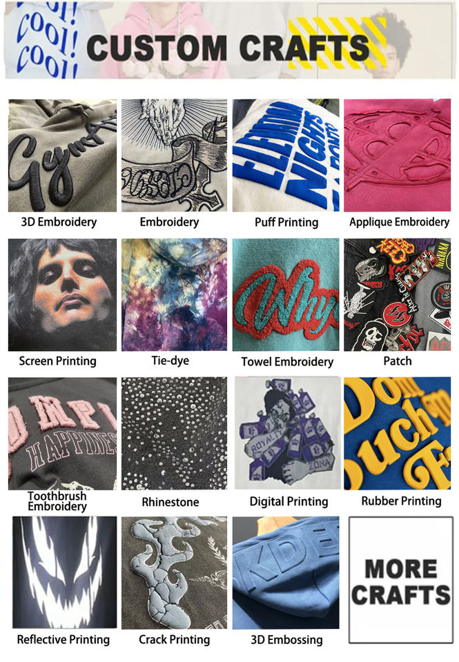 Ricamato, Stampato, Lavato, Stampa a sbuffo, Ricamo 3D, Lavaggio della sabbia, Lavaggio acido, Ricamo a catena, Di strass, Applique, Ricamo asciugamano
