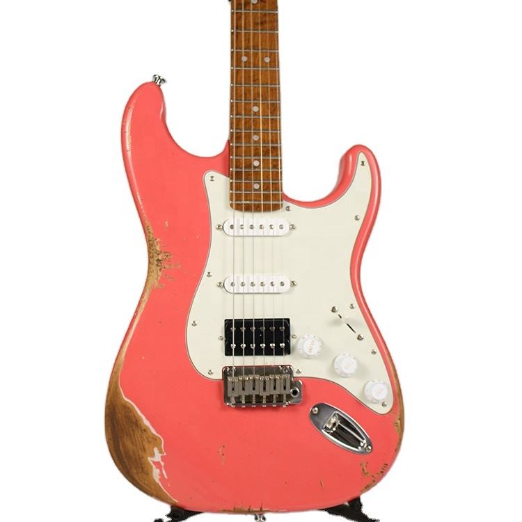 Chitarra Elettrica di Alta Qualità Personalizzata a 6 Corde, Forma ST, Rosso Nitrocellulosico, Effetto Invecchiato Vintage