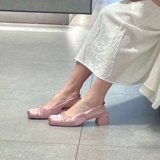Scarpe da donna personalizzate di alta qualità con fiocco Slingback in raso rosa tacchi da balletto estate all'aperto donna Mary Jane sandali