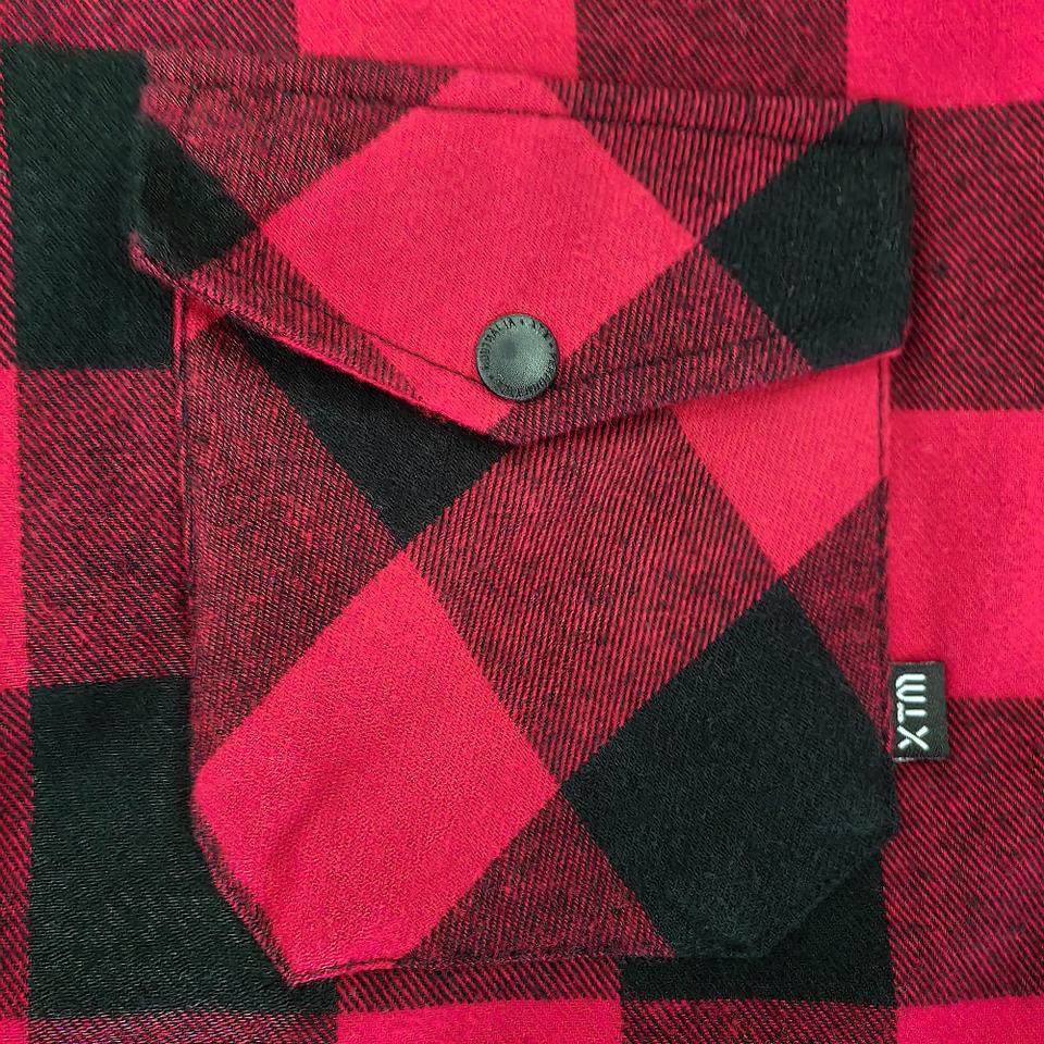 High Quality Custom logo Red Black Fleece Lined Heavyweight Polyester Cotton Quilted Plaid Flannel Shirt Jacket Men