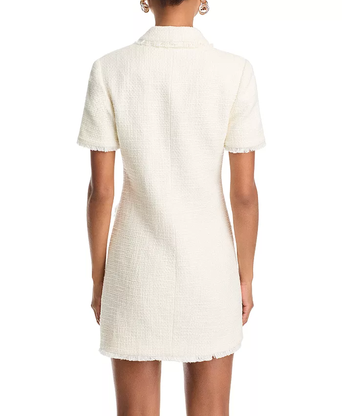 Mini abiti in Tweed da donna di alta qualità con colletto e collo con perline con bottone con tasche a maniche corte abito dritto con nappe