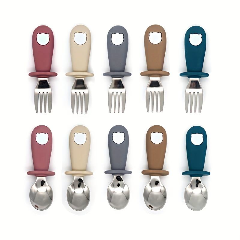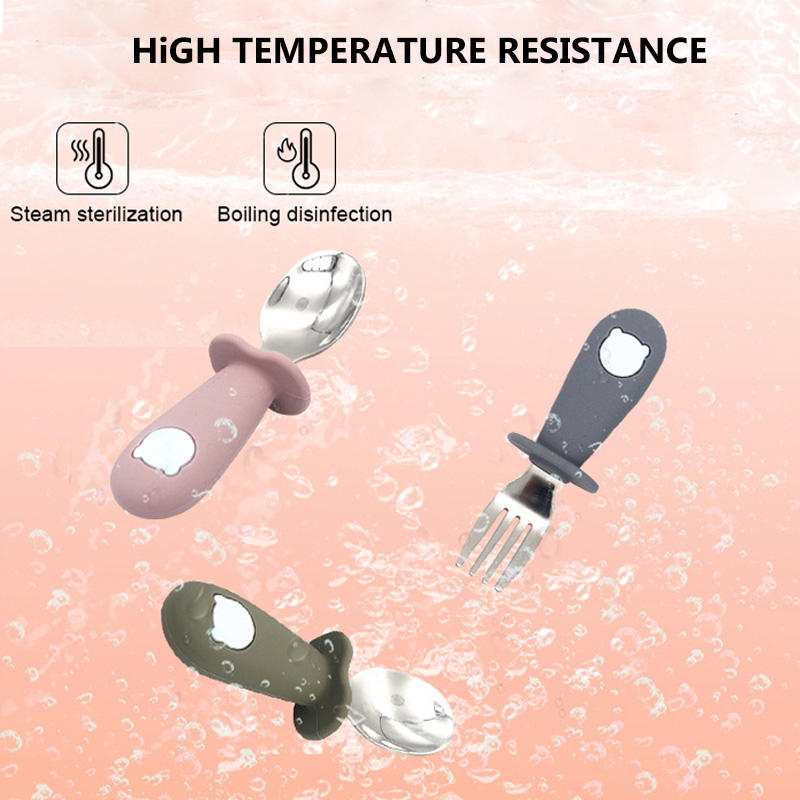 Set di alimentazione per bambini in Silicone a forma di Panda di alta qualità, Kit forchetta e cucchiaio in acciaio inossidabile sicuro per mangiare il microonde sicuro